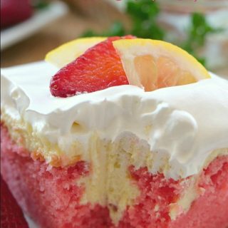 Here’s a delicious strawberry lemonade cream cheese poke cake that is perfect for spring and definitely perfect for a refreshing summer treat. This cake recipe uses my extremely popular cream cheese lemonade pie filling so you know it has to be delicious! Strawberries and lemons, two great flavors in one awesome tasting dessert.